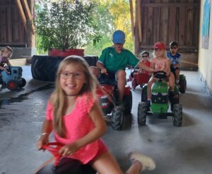 Am Bauernhof dürfen selbstverständlich Traktoren nicht fehlen – egal ob Oldtimer oder kleiner Tretschlepper – die Jungs lieben es.